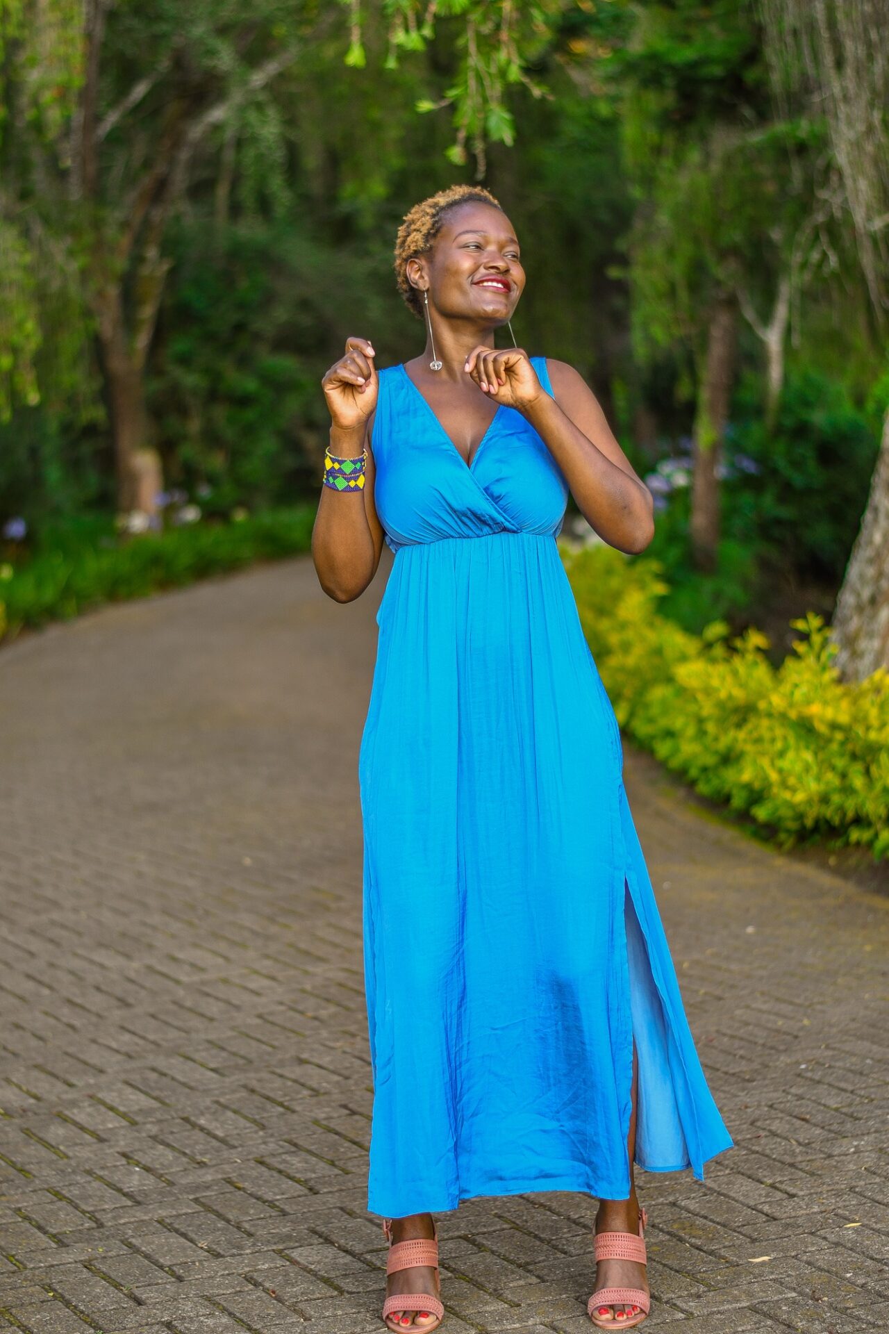 This Blue Flowy Maxi Dress is perfect for warm weather. Its breezy design and bold color ensure you stay stylish and comfortable all day.